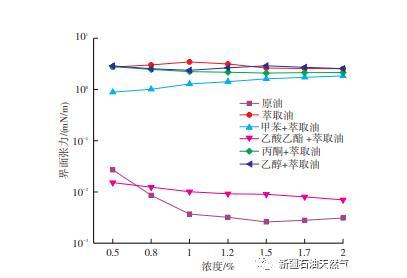 原油中活性物質(zhì)與堿作用下對界面張力的影響