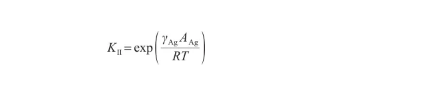 Ag-O系固-液轉變過程進行到一定限度時,系統(tǒng)達到平衡,自由能不再發(fā)生變化,且為最小。同時,固態(tài)、液態(tài)中的Ag原子濃度也不再發(fā)生變化,平衡系數(shù)KI表示為: