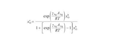 式中,xβ,O為液態(tài)Ag-O系中的O原子濃度(at%)。