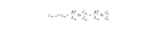 在液態(tài)Ag-O系中,O原子的化學勢(μO)表示為: