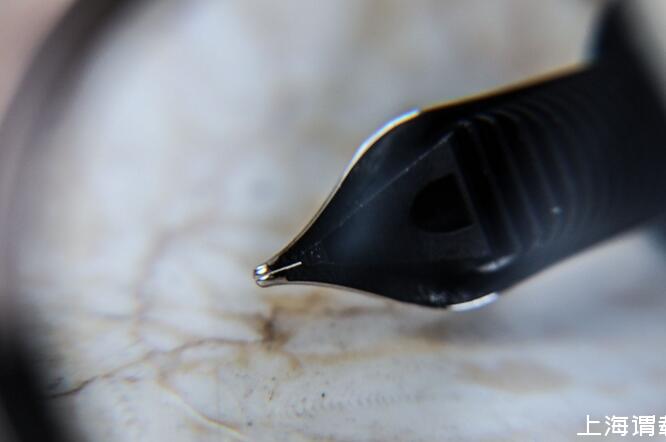 比較簡單的方法是拿小刀片調整中縫的開縫大小,和筆尖與筆舌間的距離,使更多的墨水能夠到達銥粒這邊,靠重力也能克服最后內凹的這點距離。這一步驟俗稱“刀尖”。只要不刮花金屬鍍層,基本上整個過程還是可逆的,就算一次下來效果不滿意也有進一步調整的余地。比如刀得太寬了,還能捏一捏再讓他緊一點。注意這里我們并不是要把中縫一味地開大,而是調整到合適的寬度,因為太寬墨水還是會留在中縫里,太窄又無法順利地從筆舌那邊引過來。
