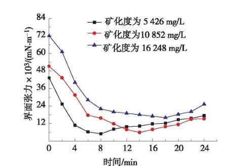 圖3礦化度對(duì)體系油水界面張力影響