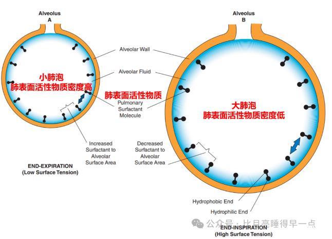 肺表面活性物質(zhì)通過降低肺泡表面張力系數(shù)(單位長度表面張力)從而降低肺泡表面張力,減小肺泡回縮力,最終降低吸氣阻力,減少吸氣做功。