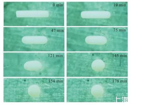 圖3是實驗所得液滴各時刻形態(tài)圖,用游標卡尺測量實驗結束后的PS液滴半徑R0為0.895 mm。