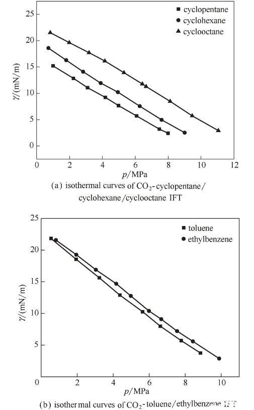 圖6 CO2-相似結(jié)構(gòu)(環(huán)烷烴/芳香烴)界面張力的等溫線