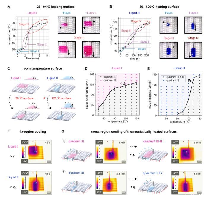 圖4:高溫表面上的動態(tài)液體運輸控制和時空可控的靶向冷卻。