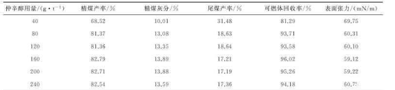 表3仲辛醇對浮選和表面張力的影響試驗結果