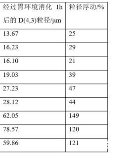 食品藥品通常需要將成分遞送到腸道中進行吸收利用,乳液是一種很好的營養(yǎng)成分遞送體系,通過制備成小液滴的水包油形式,可以極大提高液滴的比表面積,從而有利于后續(xù)油滴在腸道的吸收利用。然而由于胃中pH較低,且存在生物酶環(huán)境復(fù)雜、溫度高、胃蠕動等環(huán)境脅迫,乳液往往會失穩(wěn)甚至破乳,會造成乳液粒徑增加、吸收利用效率低、營養(yǎng)物質(zhì)暴露受損等,從而導(dǎo)致營養(yǎng)功能大打折扣。現(xiàn)有技術(shù)缺少在消化道中的觀察,從而無法制備有效的胃穩(wěn)定乳液以遞送營養(yǎng)物質(zhì)。專利CN202010448118.6用豌豆分離蛋白與菊粉在90℃條件下反應(yīng)1-3h,使其發(fā)生美拉德反應(yīng),生成的結(jié)合物穩(wěn)定乳液后以氯化鈣交聯(lián)制備乳液凝膠具備高胃環(huán)境下的穩(wěn)定性,一方面用豌豆分離蛋白與菊粉結(jié)合的美拉德反應(yīng)產(chǎn)物需要高溫條件下生成,另一方面高胃環(huán)境下的穩(wěn)定性是通過氯化鈣交聯(lián)形成致密的凝膠網(wǎng)絡(luò)實現(xiàn),而非乳液本身。目前為止,尚未有抗胃環(huán)境脅迫的高穩(wěn)定乳液的制備的報道。