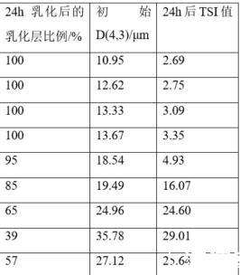 將玉米油加入第三物料中獲得第四物料,其中玉米油的用量為45重量%。隨后將第四物料在常溫下進行剪切處理,剪切速率為12000 r/min,時間為5min。即獲得玉米內(nèi)源組分乳液。