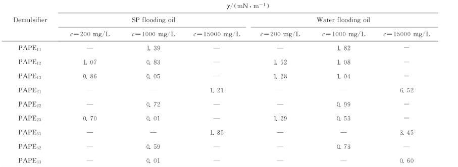 2.4酚胺樹脂聚醚破乳劑(PAPEmn)對不同原油體系油-水界面張力的作用