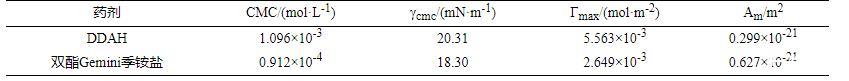 表1 DDAH與雙酯Gemini季銨鹽表面性能計(jì)算結(jié)果