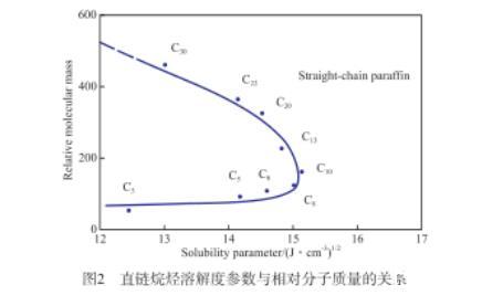圖2直鏈烷烴溶解度參數與相對分子質量的關系