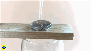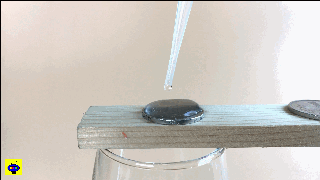 正是由于這個力,硬幣上的水滴能夠凸起來,在極限值到來之前,液滴都不會倒塌。