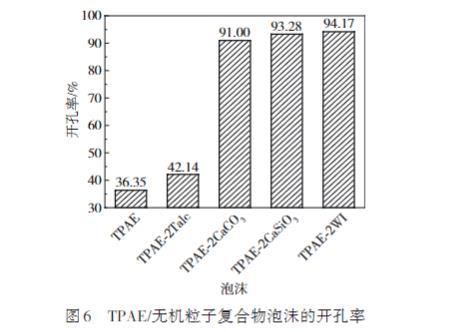 圖6 TPAE/無(wú)機(jī)粒子復(fù)合物泡沫的開(kāi)孔率