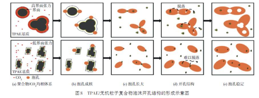 圖8 TPAE/無(wú)機(jī)粒子復(fù)合物泡沫開(kāi)孔結(jié)構(gòu)的形成示意圖