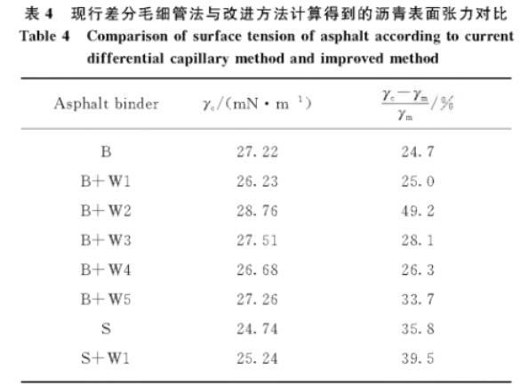 表4現行差分毛細管法與改進方法計算得到的瀝青表面張力對比