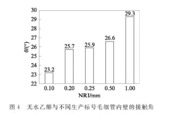 圖4無水乙醇與不同生產標號毛細管內壁的接觸角