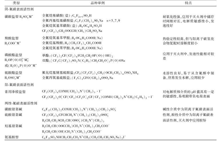 目前氟碳表面活性劑作為滅火劑的核心組分受到國內外的一致重視,它能使AFFF和FP在燃液面上迅速鋪開,構造泡沫膜,從而隔絕空氣,達到徹底滅火的效果。其中AFFF已經替代傳統滅火劑應用于油類火災中,滅火速度是傳統應用方法的4倍,這是由于泡沫可以通過析出水或破裂后生成的水,在燃液表面形成一種阻礙其揮發的水膜,從而隔絕滅火,此外它對殘余火苗具有良好的自封作用,滅火更為徹底。FP的原理在于,較薄的泡沫層在高分子聚合物溶液表面上快速覆蓋,結構牢固,不易被破壞;具有令破損泡沫快速地重新形成的作用,最終達到隔絕滅火的目的。若與普通滅火劑聯用,滅火效果會更好,應用非常廣泛。