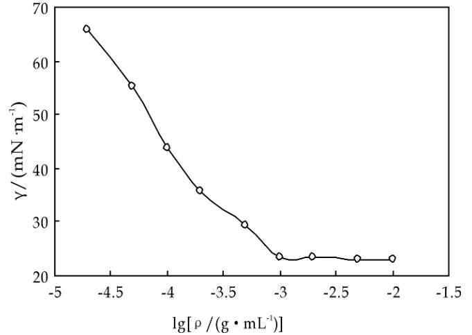FSS的質(zhì)量濃度(ρ)對其在水中的表面張力(γ)的影響如圖2所示。