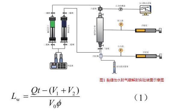 3)氣體增壓注入。將巖心夾持器水平放置,利用注入泵以恒定速度向入口端注入氣體,以增加巖心中水封段塞兩端壓差,直至出口端氣體突破則停止加壓,此時巖心兩端壓差為解封壓差。另外,可通過改變出口端回壓來模擬不同裂縫壓力,通過改變巖心滲透率、水封段塞長度和巖心出口端回壓,研究不同因素對解封壓差的影響規(guī)律。