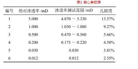 式中Lw表示水封段塞長度,cm;Q表示注入速度,cm3/s;t表示注入時間,s;V1表示巖心出口端三通閥與采出液計量器間的固定體積,cm3;V2表示三通閥與巖心夾持器巖心間的固定體積,cm3;V0表示巖心體積,cm3;?表示巖心孔隙度。