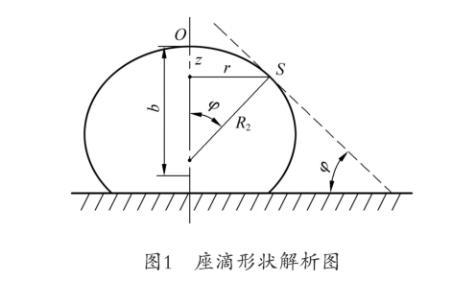 座滴法是基于熔體(液體)在水平托板表面形成穩(wěn)定橢球液滴的形狀參數(shù)測量表面張力的方法[6]。基于座滴法測量玻璃熔體表面張力,玻璃熔體在水平托板上受重力和表面張力共同作用形成旋轉(zhuǎn)軸對稱橢球[7](圖1),橢球表面任一點的壓力差與表面張力之間的數(shù)學關系見式(1):