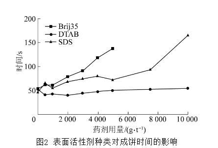 圖2表面活性劑種類對成餅時間的影響