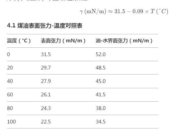 煤油的界面張力多少合適,煤油表面張力與溫度對(duì)照表