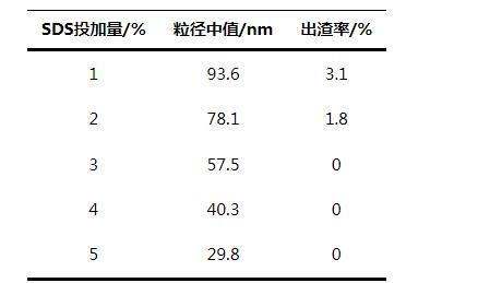 表1 SDS投加量對產(chǎn)品性能的影響