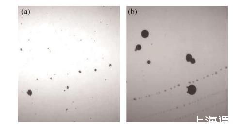 圖3加反相破乳劑前(a)、后(b)含油污水顯微照片對比