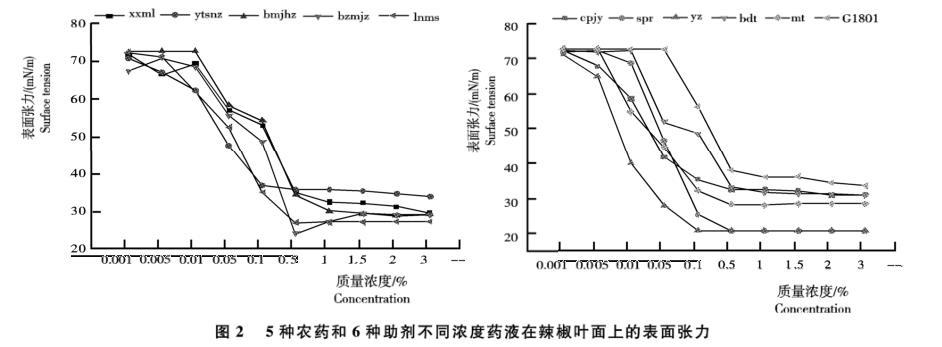 基于表面張力儀等研究常用農藥和表面活性劑在辣椒葉面的潤濕能力——結果與分析、結論