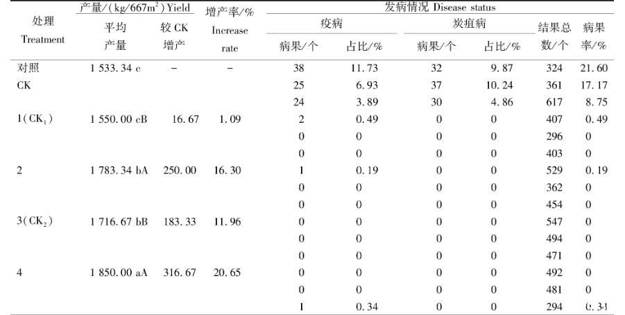2.2對病蟲害的防治效果及產量的影響