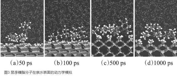 圖3鼠李糖脂分子在親水表面的動力學(xué)模擬