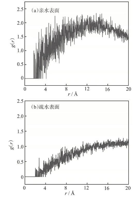 圖5鼠李糖脂分子與不同潤濕性表面的徑向分布函數(shù)