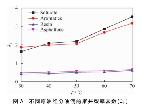 圖3不同原油組分油滴的聚并速率常數(shù)(k0)