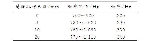 表3薄膜拉伸長度與吸聲系數(shù)>0.6對應(yīng)的頻率范圍表