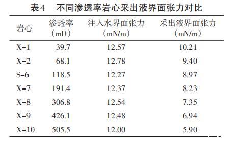(1)實(shí)驗(yàn)方法采用芬蘭Kibron dIFT雙通道動(dòng)態(tài)界面張力儀檢測不同滲透率巖心的二次水驅(qū)采出液和原油的界面張力。