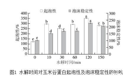 圖1水解時間對玉米谷蛋白起泡性及泡沫穩定性的影響