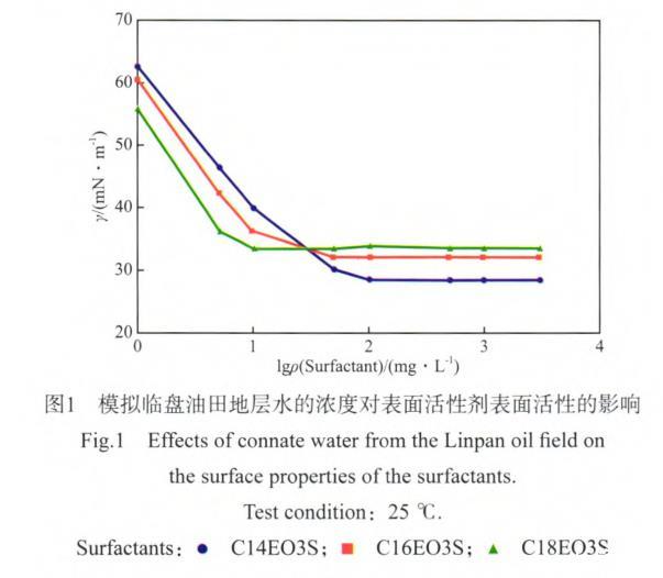 圖1模擬臨盤(pán)油田地層水的濃度對(duì)表面活性劑表面活性的影響