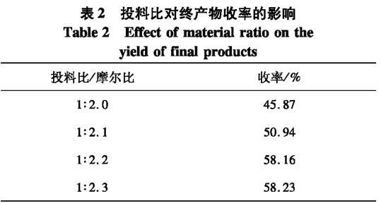 表2投料比對終產物收率的影響