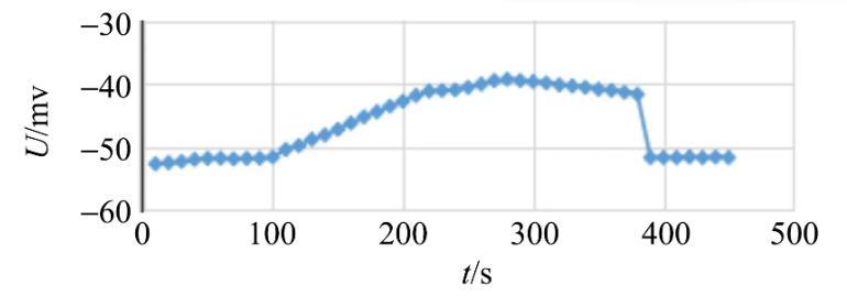 金屬吊環(huán)這一運(yùn)動過程中電壓值也趨于平穩(wěn),對應(yīng)于圖2中380~450 s這一時間段的變化曲線.