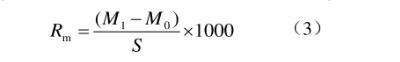采用浸漬法并稍作改進(jìn)。藥液配制方法同1.2.2節(jié)。采集蘋果成熟葉片,避開(kāi)邊緣及褶皺處將葉片打成直徑為3.5 cm的圓形平整葉碟,計(jì)算葉碟面積(S)為9.62 cm2。浸漬前,用電子天平讀取葉碟初始質(zhì)量(M0,g),用鑷子夾持葉碟完全浸入藥液3 s后取出,垂直懸置待不再有液滴滴下時(shí)讀取載液后質(zhì)量(M1,g),根據(jù)公式(3)計(jì)算最大持留量(Rm)(mg/cm2),每處理重復(fù)10次,結(jié)果取平均值。