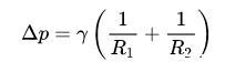 我們有一個(gè)公式可以表示這個(gè)關(guān)系,叫做楊-拉普拉斯方程(Young-Laplace equation):