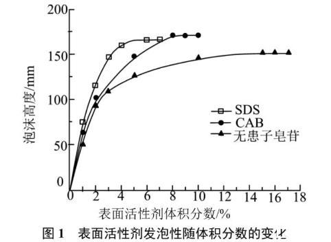 圖1表面活性劑發泡性隨體積分數的變化