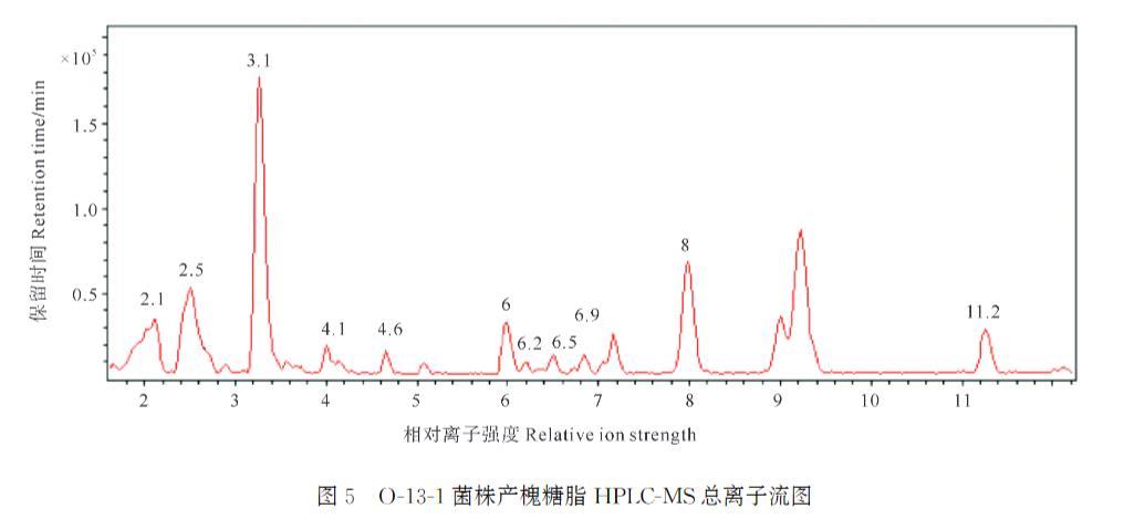 圖5 O-13-1菌株產槐糖脂HPLC-MS總離子流圖