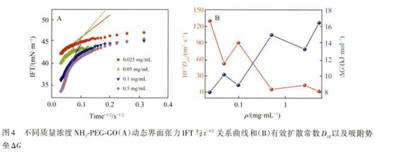 計算得到了NH2-PEG-GO吸附能壘ΔG,如圖4B所示。發現隨著NH2-PEG-GO質量濃度增加,吸附能壘增加,意味著NH2-PEG-GO的界面吸附受到了阻礙。