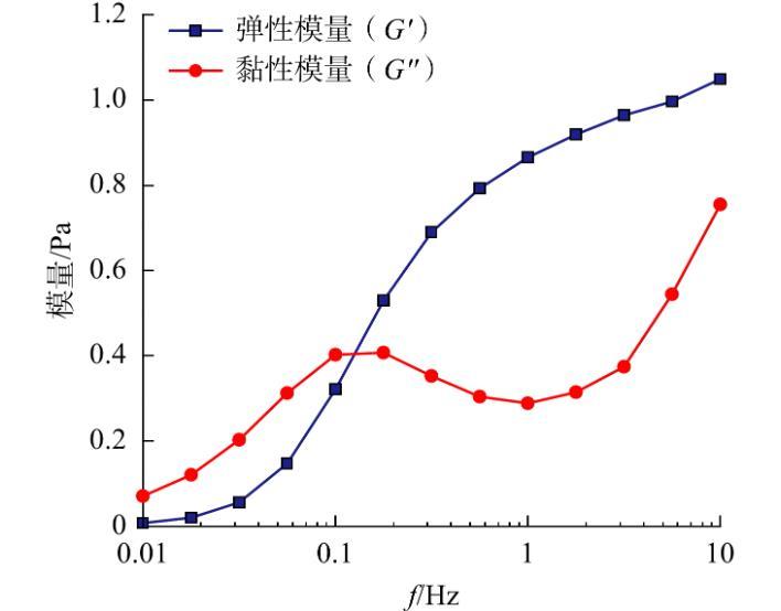 圖8小段塞的黏彈性隨振動(dòng)頻率的變化情況