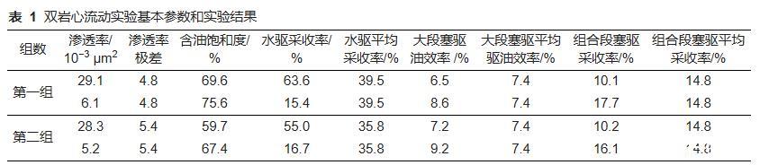 表1雙巖心流動(dòng)實(shí)驗(yàn)基本參數(shù)和實(shí)驗(yàn)結(jié)果