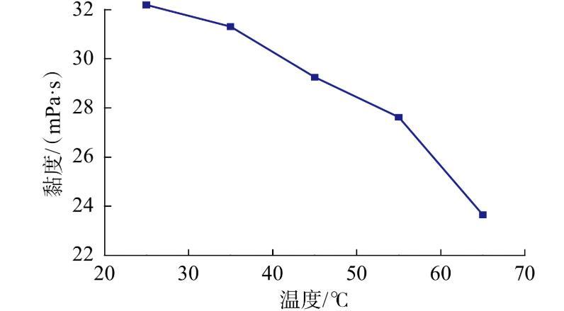 圖9質(zhì)量分?jǐn)?shù)為2.7%的ACS-2高黏表面活性劑體系溶液黏度隨溫度的變化