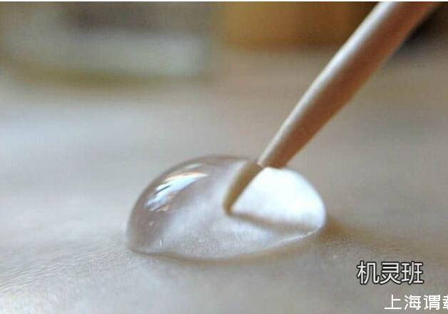 引申實驗,在水滴上放置1滴油,把它們混合在一起后,再用干凈的牙簽戳混合后的液滴,看看此時會發生什么現象。然后用蘸有洗潔精的牙簽戳混合后的液滴,看看又會出現什么現象。